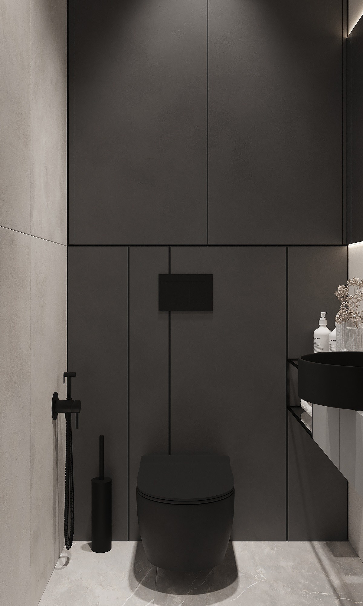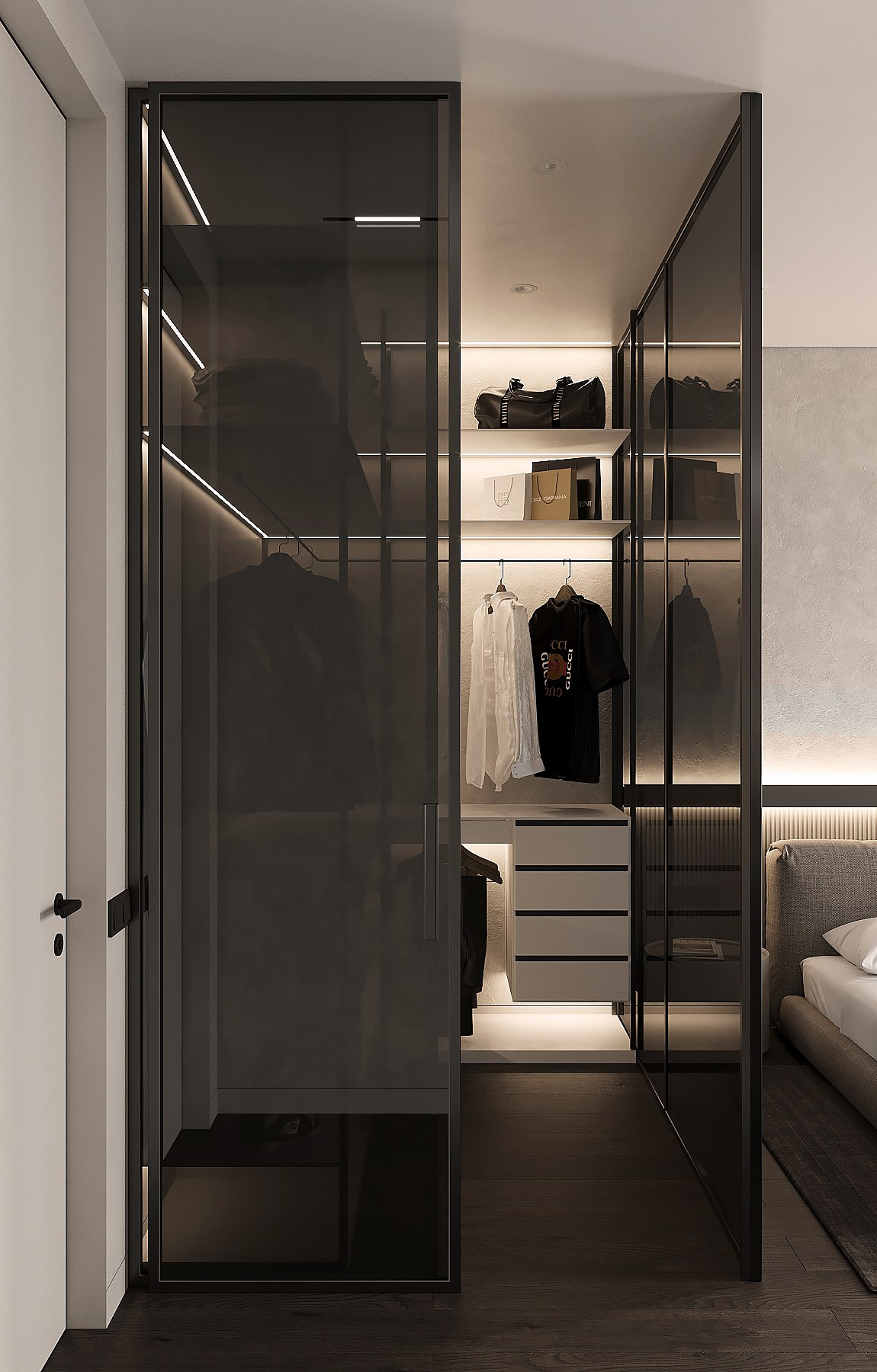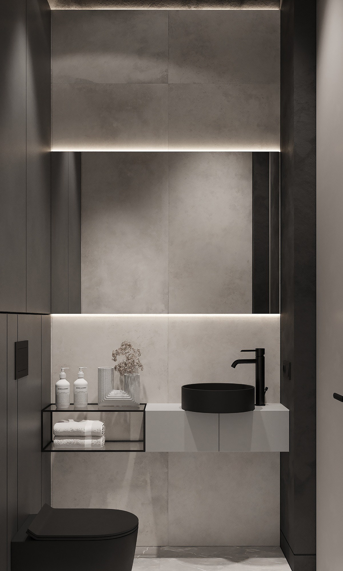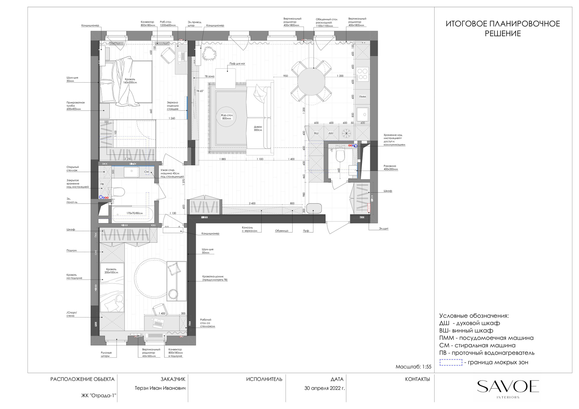 Применяемые материалы в данном проекте — кгл -потолки с трековым освещением, отделка стен покраска/декоративная штукатурка, на полу инженерная доска, в ванне применения крупформатного керамогранита 160×80 см, высокие двери на 2,8 м, гипсовые панели, плинтус скрытого монтажа. Данный проект не простой, стоимость реализации с такими решениями на 2023 г. — 150 тыс. за кв. м.