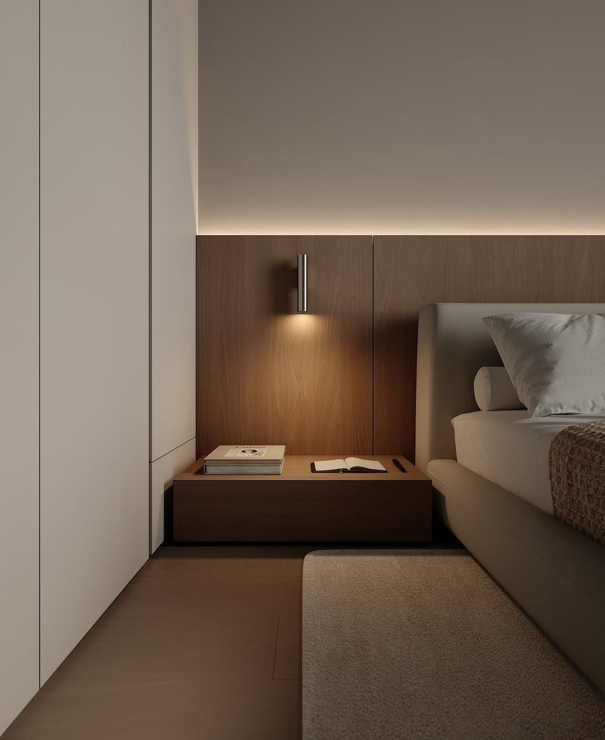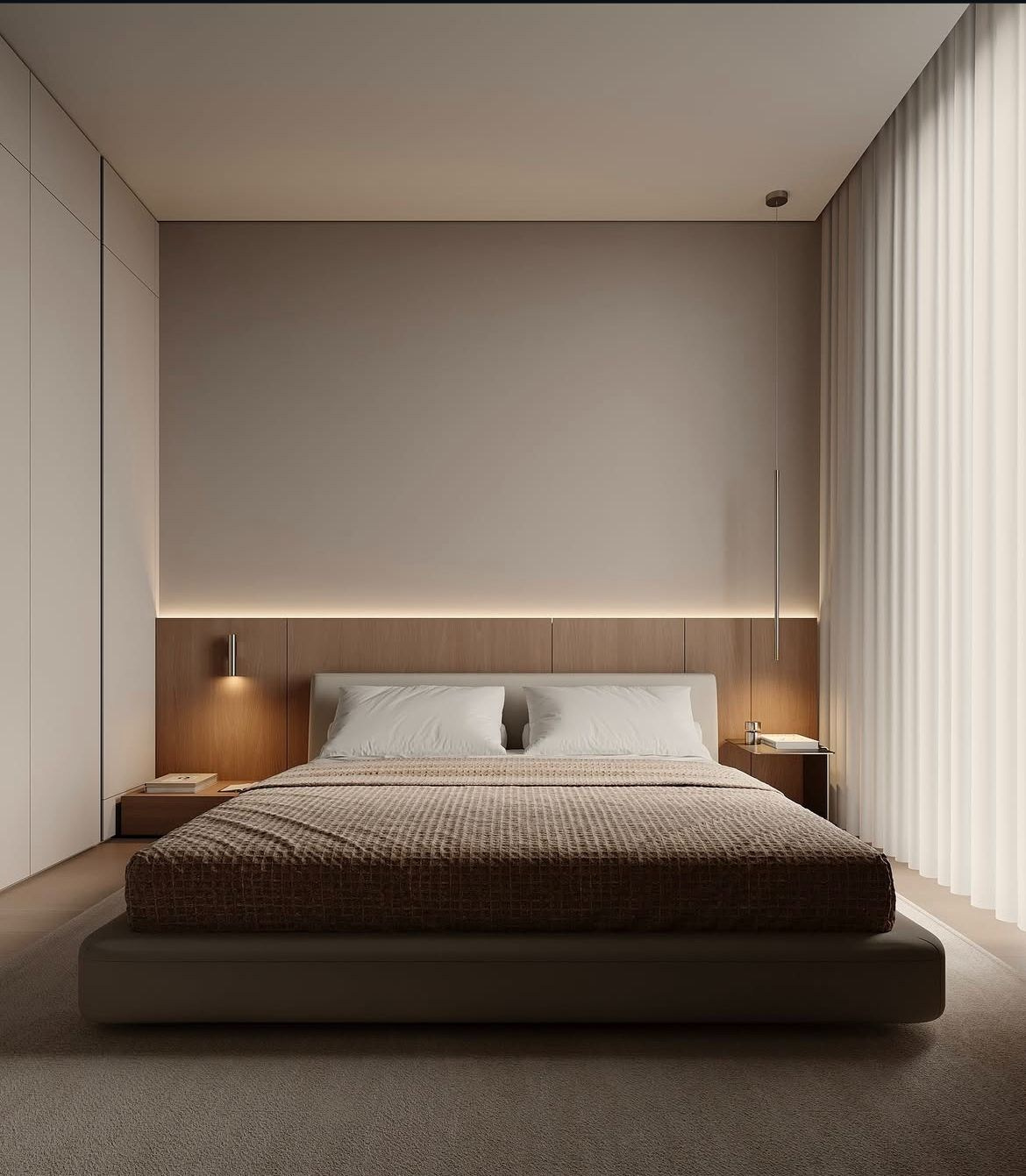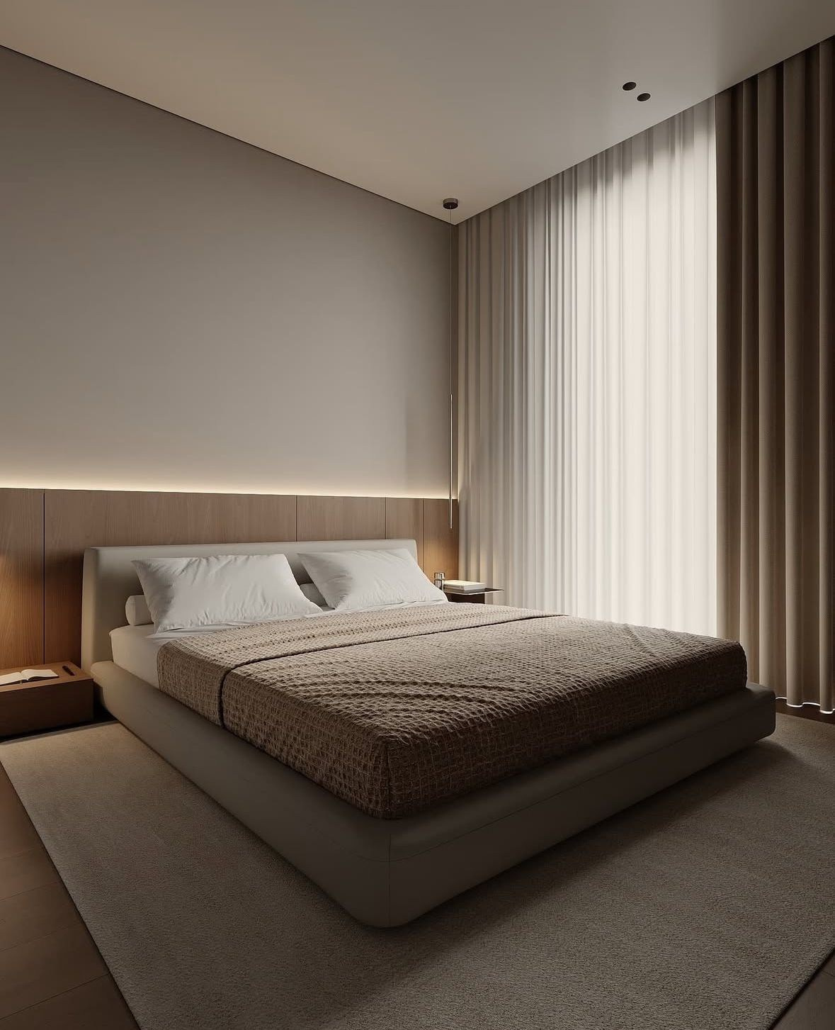 Здесь полностью отражен теплый минимализм в стилистике данного проекта. Теплые оттенки стен, много дерева, отсутствие какой-либо лепнины, простые формы.